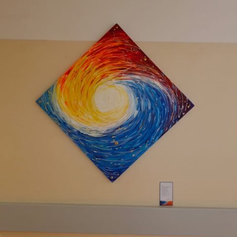 L’artista dell’opera, Debora De Massimo, paziente FC del Centro di Cerignola e membro del consiglio direttivo di LIFC PUGLIA, in una immagine astratta, ricca di colore e significato, ha voluto rappresentare simbolicamente un vortice di:
